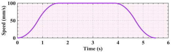 Comparing Figure 5 and Figure 6, it can be seen that the improved motion scheme results in a smoother speed curve. Concurrently, it effectively reduces the vibration generated by the motor during starting and stopping. With the basic parameters unchanged, the unoptimized time schedule which does not include arc adjustment and smooth transition took 7.26 s, whereas the optimized time schedule, which includes arc adjustment and smooth transition, is shortened to 5.51 s. After the two parts are optimized, the total time is saved by 1.75 s, a 24.1% reduction compared to the original scheme.
