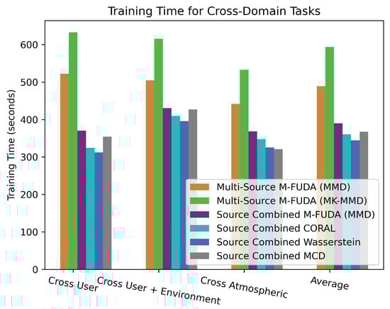 The main objective of our evaluation is to assess the performance of M-FUDA in tackling the main types of domain adaptation tasks in human activity recognition using device-free sensing identified in the previous discussion as domain-shifting inconsistency produced due to varying users, environments, and/or atmospheric conditions from the training to the testing phase of the model. All experiments conducted in this study were performed on an Intel Core i7-9700K CPU (Intel Corp., Santa Clara, CA, USA) equipped with 32GB of internal memory and an Nvidia RTX 3060 GPU (Nvidia Corp, Santa Clara, CA, USA).