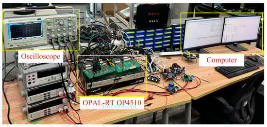 Figure 15. The OPAL-RT OP4510 is used to generate the control signals and run the simulation model, which operates on RT-LAB, the industrial-grade real-time simulation system developed by OPAL-RT (Montreal, QC, Canada). The oscilloscope monitors and collects the current signals generated by the OP4510 in real time, producing waveform files. The desktop computer is used to run the fault diagnosis program.