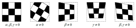 Through the above analysis, the Euler angles β and γ in extrinsic parameters cause perspective distortion in planar imaging.