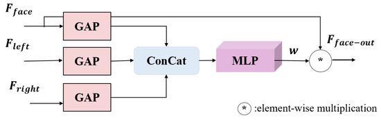 where ∗ denotes element-wise multiplication; represents the facial feature after the CA block of the top branch in Figure 1, and w is its corresponding re-assigned weight derived from