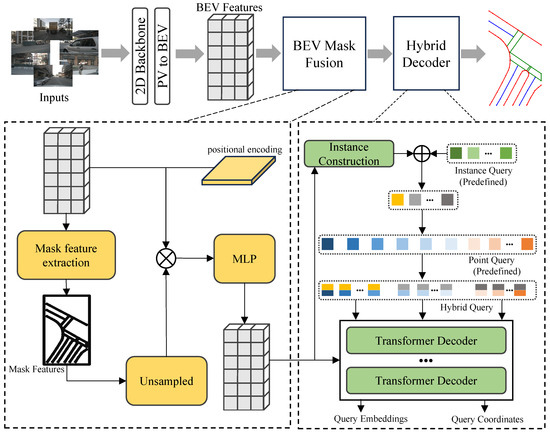- Qiao, L.; Ding, W.; Qiu, X.; Zhang, C. End-to-end vectorized hd-map construction with piecewise bezier curve. In Proceedings of the IEEE/CVF Conference on Computer Vision and Pattern Recognition, Vancouver, BC, Canada, 17–24 June 2023; pp. 13218–13228. [Google Scholar]
