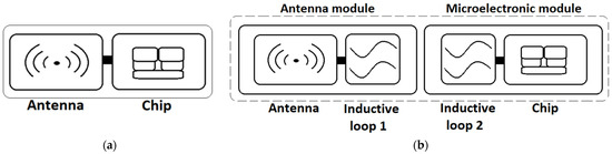 Block diagram of UHF RFID transponder (tag): (a) typical passive construction; (b) RFIDtex design with separate antenna module and microelectronic module.