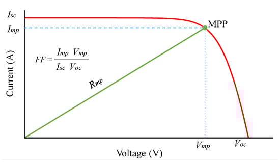 The above analysis indicates that can be calculated using Equation (4) immediately after is determined. Then, the MPP position of a PV panel is calculated based on the fill factor () according to (5).
