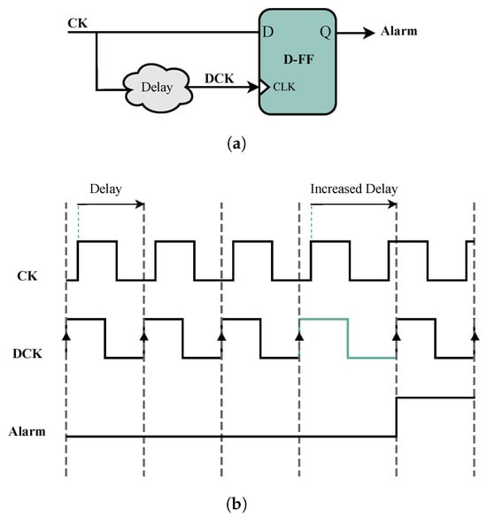 - Zhang, M.; Liu, Q. A Digital and Lightweight Delay-Based Detector against Fault Injection Attacks. In Proceedings of the 2021 IEEE International Symposium on Circuits and Systems (ISCAS), Daegu, Korea, 22–28 May 2021; IEEE: Piscataway, NJ, USA, 2021; pp. 1–5. [Google Scholar]