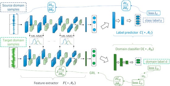 - Long, M.; Cao, Y.; Wang, J.; Jordan, M. Learning transferable features with deep adaptation networks. In Proceedings of the 32nd International Conference on Machine Learning, Lille, France, 6–11 July 2015; PMLR: Cambridge, UK, 2015; pp. 97–105. [Google Scholar]