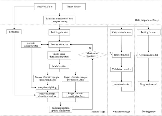The training process of the proposed model consists of four stages: the data preparation stage, the training stage, the validation stage, and the testing stage. A flowchart of the stages is presented in Figure 6.
