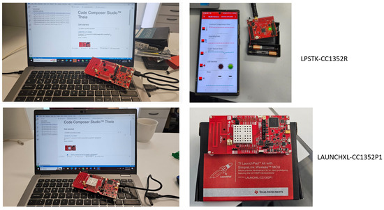 The CC1352P LaunchPad by Texas Instruments is a multi-protocol wireless microcontroller unit designed for low-power IoT applications. It supports multiple wireless communication protocols, including LoRa, BLE, and IEEE 802.15.4 [48], which enables connectivity with Zigbee and Thread networks. The device operates at both sub-GHz frequencies (868 MHz or 915 MHz for LoRa) and 2.4 GHz for BLE. The modulation techniques used include GFSK for LoRa and FHSS for BLE. It offers a wide communication range, reaching up to 10 km in line-of-sight conditions when using LoRa, while BLE communication is effective within 100 m, depending on environmental factors. Furthermore, the CC1352P is designed for ultra-low power consumption, featuring energy-efficient sleep modes that make it ideal for battery-operated IoT deployments.