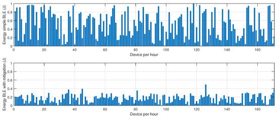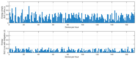 The experimental setup that produced these specific distributions consisted of a series of controlled tests conducted in a university campus environment. Sensor nodes were deployed in various locations, including laboratories, classrooms, and open areas, ensuring diverse interference conditions. Data were collected over multiple experimental runs, capturing energy consumption at regular intervals while the network operated under jamming attacks. The mitigation algorithm played a crucial role in stabilizing the hybrid BLE-LoRa approach by dynamically selecting the most energy-efficient communication protocol based on real-time network conditions. By ensuring that BLE was prioritized in low-interference environments and LoRa was used selectively for resilient communication, the algorithm minimized unnecessary protocol switching and reduced overall energy consumption.