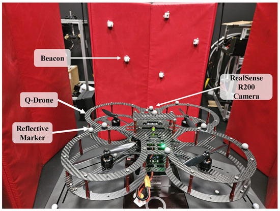 Quanser drone and five reference beacons.