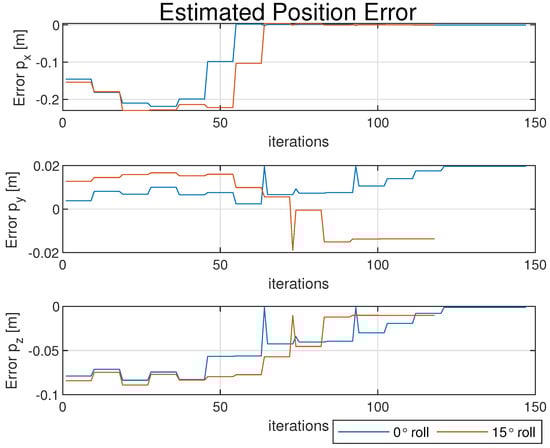 Error for estimated position elements [] across iterations for numerical solver.