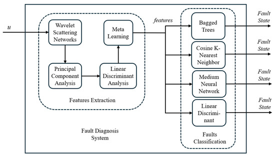 - A fault diagnostic system is developed using a combination of Wavelet Scattering Networks (WSNs), Principal Component Analysis (PCA), Linear Discriminant Analysis (LDA), and Meta-Learning.