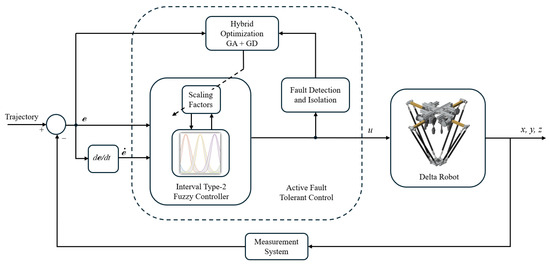 The rest of this paper is organized as follows: Section 3 describes the studied Delta robot. Section 4 presents the design of the fault diagnostic system. The active fault-tolerant control strategy is described in Section 5. Section 6 discusses the results, and Section 7 presents conclusions and future work.