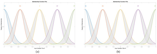 The sliding surface is typically defined in terms of the error and its derivative. The basic form of the sliding surface chosen for this application is shown in Equation (9), where e is the error between the reference and the output, is the derivative of the error, and represents the fitting parameter of the sliding surface.