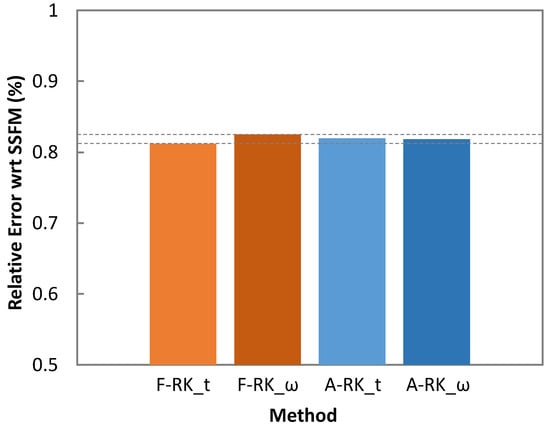 Figure 6 plots the RSE. All the considered RK4IP methods provided solutions leading to very small error compared with the SSFM method, which makes them valid approaches for simulation of MB optical transmission.