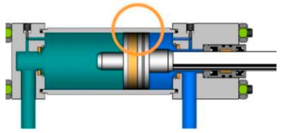 As illustrated in Figure 2, internal leakage in the hydraulic cylinders refers to the process by which hydraulic oil flows from the high-pressure region to the low-pressure region through the gap between the piston and the cylinder wall [33]. However, the causes of internal leakage in hydraulic cylinders are multifaceted, including factors such as the wear, aging, and deformation of sealing components; the contamination of the hydraulic oil by gases, water, and particulate matter; the rationality of the structural design, and the precision of component machining and assembly [34].