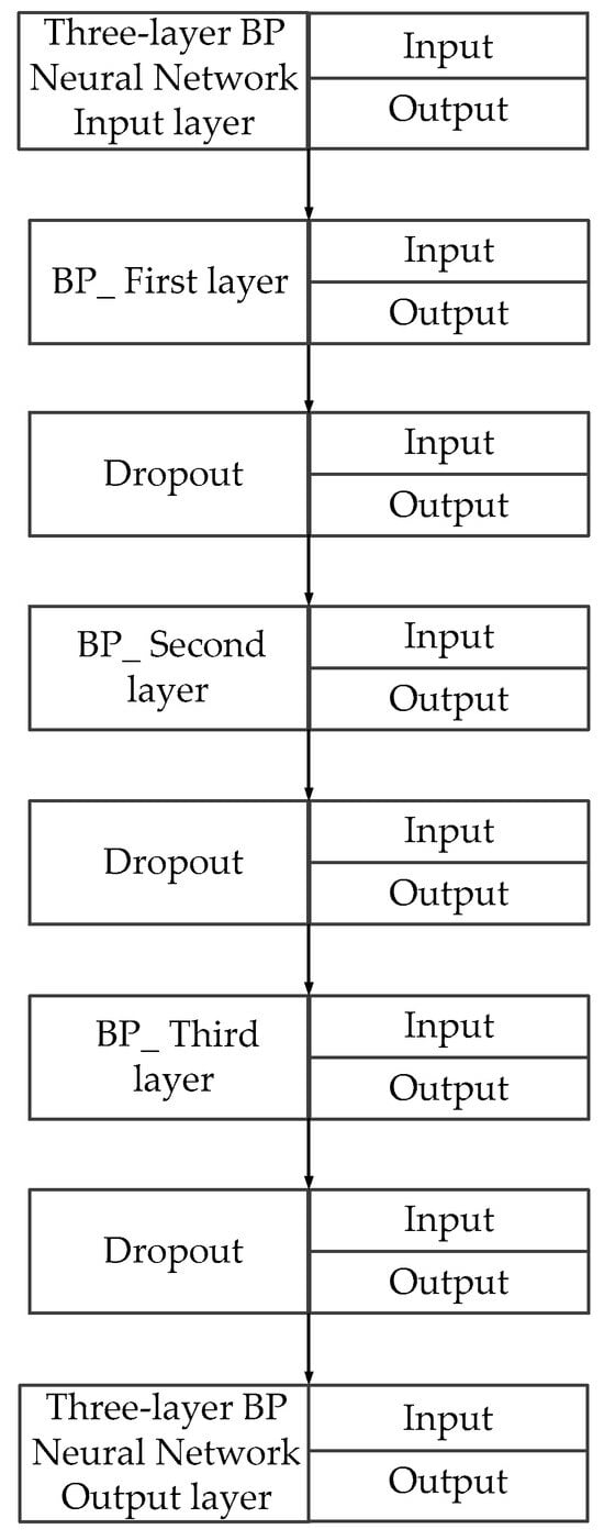 In practical applications, most flow sensors have a certain signal delay. The sensor structure, the signal processing circuit, and other factors may cause signal delays [37]. In practical applications, it is necessary to predict the flow value at the starting time point. According to the principle of the predicted displacement and the reason for the flow sensor delay, the internal structure of the predicted model is a nested three-layer BP neural network.