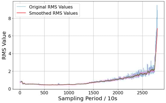 The RMS is smoothed using the moving average method. For a time series , with a sliding window size of N, the moving average can be expressed as follows: