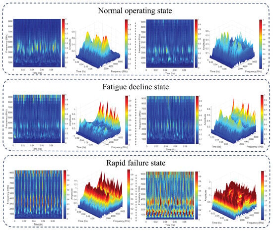 The time–frequency characteristics of bearing vibration signals can effectively reflect their operating conditions and fault features. Features in different time–frequency domains, such as amplitude, frequency components, and energy distribution, are directly related to the degradation level of the bearing. By extracting time–frequency features associated with faults, the degradation trend of bearing performance can be captured, providing a crucial basis for predicting the remaining useful life (RUL) of the bearing.