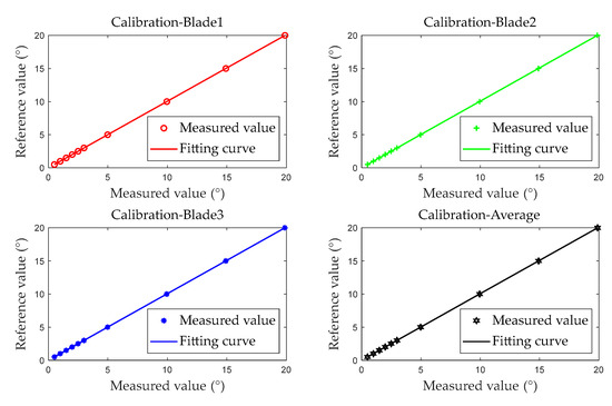 In the previous sections, the feasibility of the proposed method and device was evaluated through error analysis and uncertainty evaluation. This section focuses on evaluating the accuracy of the optical fiber BTT measurement system, which has been widely applied in the industry. By adjusting the angle of the multi-tooth indexing table and the speed of the rotating blade disk test bench, simulations of various blade vibration displacements and speed conditions are conducted.