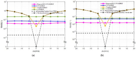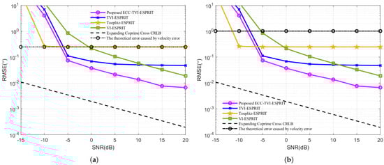 RMSE under different SNR: (a) m/s. (b) m/s.