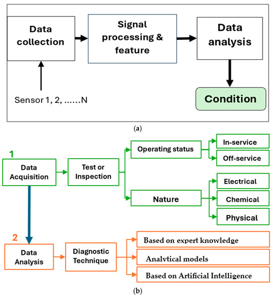 Figure 1. Overview of the general procedure for condition monitoring and fault diagnosis (a) [9] (b) [8].