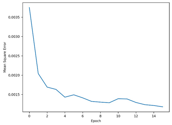 EarlyStopping function with a patience of five was applied, restoring the best weights where the mean square error was minimized. Additionally, a dropout rate of 0.3 was applied to the final dense layer. The training process, as depicted in