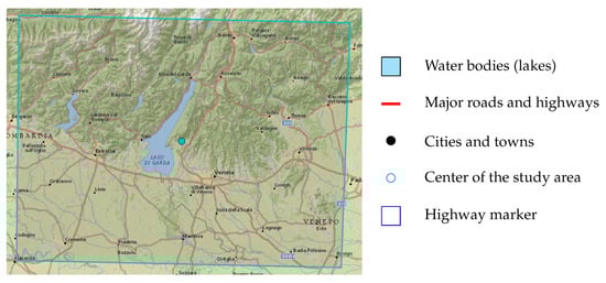 Lake Garda (Lago di Garda) is the largest lake in Italy, situated in Northern Italy between Brescia in the Lombardy region and Verona in the Veneto region. Figure 1 shows a map of the studied area. The Lake Garda area includes diverse water bodies, farmlands, various orchards, urban areas, pastures, and forests. Due to its geographical and climatic diversity, this region is considered an ideal location for LC analysis. In addition to its natural features, the area has a well-developed infrastructure, including transportation networks and expanding urban areas. This diversity presents significant challenges for accurately classifying LC types [4].