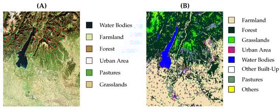 The selected area was analyzed across eight LC classes: Pastures, Water Bodies, Grasslands, Urban Areas, Farm Land, Forest, Other Built-Up, and Others. The samples were selected using QGIS tools and the Semi-automatic Classification Plugin (SCP). Using the graphical user interface, the Sentinel-2 data were manually downloaded from the Copernicus website. The details of the selected geographic area include a longitude range of [9.727, 11.814] E and a latitude range of [45.023, 46.178] N. The specifications of atmospheric and geometric corrections applied to downloaded images are listed in Table 3.