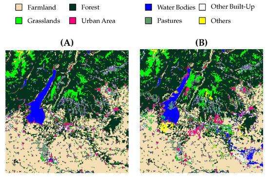 Land cover classification (LCC) using remote sensing images aims to generate schematic maps from satellite and drone imagery [1]. This process involves creating a numerical representation based on available data for specific land cover (LC) types, such as forests, grasslands, pastures, water bodies, buildings, polluted areas, and mining zones [2,3]. By applying a computational classification method, the LC type in each different region of an image can be accurately identified. With the expansion of imaging and remote sensing drones and satellites, along with the increased accuracy and range of wavelengths acquired by sensors, LCC using remote sensing imagery has seen significant growth [4,5]. LCC has widespread applications across various fields, such as ecology, geography, climatology, and mapping [4,5]. Monitoring environmental changes using satellite imagery allows for detecting anomalies and changes, such as the degradation of natural resources [6]. This allows managers and planners to assess pollution and climate change with exceptional speed and precision. With the rapid growth of artificial intelligence, particularly in Computer Vision, supervised and semi-supervised methods for satellite image segmentation and classification have significantly improved in versatility and accuracy [7,8]. However, due to the complexity of specific patterns and the demand for highly detailed classifications, existing methods still require further refinement and enhancement [8].