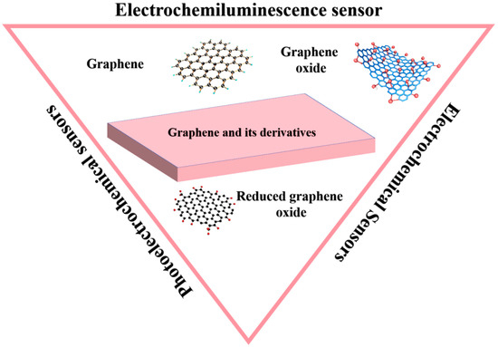 Numerous reviews have addressed the sensing applications based on graphene and its derivatives [35,36,45,46,47]. For instance, Reddy et al. [46] investigated the advancements of graphene composites for electrochemical sensors from both structural and functional perspectives, while Coros et al. [47] examined the progress of graphene-based materials for enhanced biosensors with a focus on improved analytical performance. In this discussion, we will explore the research advancements related to the application of graphene and its derivatives in electrochemical sensing, photoelectrochemical sensing, and electrochemiluminescence sensing, emphasizing their role as functional units (Scheme 1).