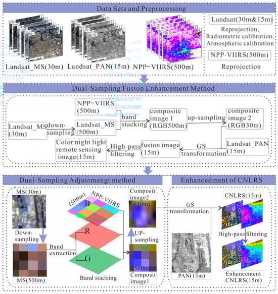 Figure 5. Dual-sampling adjustment method for fusion generation of color nighttime light remote sensing imagery.