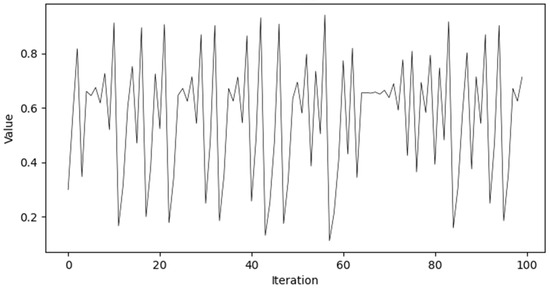 Chaos exhibits randomness, ergodicity, and sensitivity to initial values, which enables algorithms to converge quickly. The randomness of chaotic systems can provide algorithms with rich search capabilities, helping them escape the local optima. Tent chaotic mapping is a typical mapping in chaotic systems. Its nonlinear characteristics and high sensitivity to initial conditions result in the powerful chaotic behavior of Tent mapping.