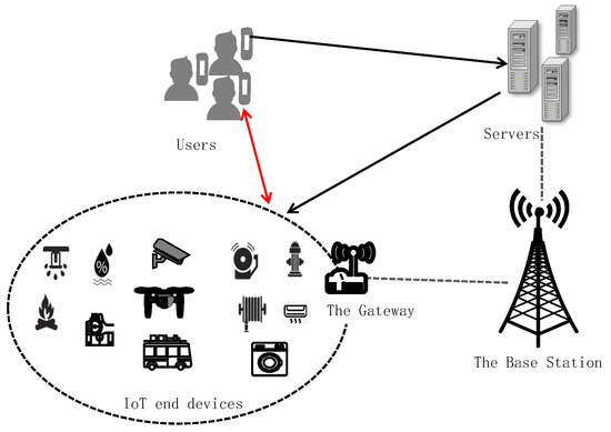 Figure 1, the IoT system is composed of IoT devices, gateways, servers, and remote users, which form the foundation to enable the acquisition, processing, and transmission of real-time data. In smart homes, smart healthcare, and industrial IoT application systems, users need to remotely access or control IoT devices and send them specific instructions [