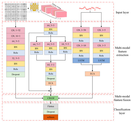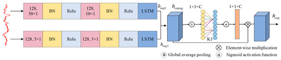 Subsequently, three convolutional layers with different convolutional kernels (, and ) are used to process the input data in parallel to extract features.