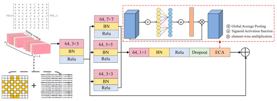Next, the ECA is used to intelligently fuse the two-branch features to further refine the feature set with high representativeness and discriminant power, and the specific process can be formalized as follows: