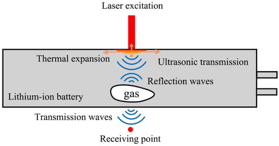 Tang, D.; Xu, C.; Xu, G.; Cui, S.; Zhang, S. Non-Contact Laser Ultrasound Detection of Internal Gas Defects in Lithium-Ion Batteries. Sensors 2025, 25, 2033. https://doi.org/10.3390/s25072033