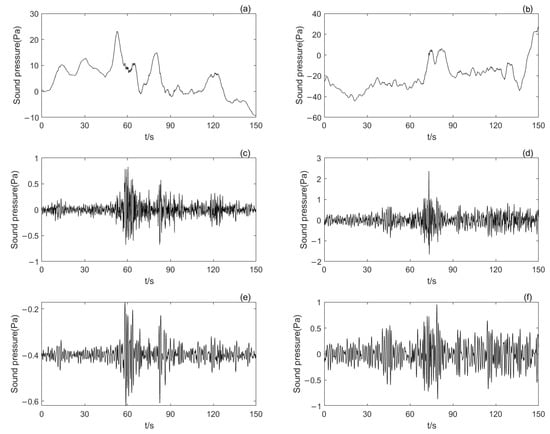 During propagation, infrasound signals are vulnerable to non-sound pressure fluctuations induced by turbulent interactions within the atmosphere, ground, or other obstacles []. In the transmission process, the infrasound signal will inevitably incorporate some noise and trend components, which can obscure important event information. Consequently, preprocessing the original infrasound signal to eliminate the influence of noise and trend items and enhance the signal-to-noise ratio (SNR) of the infrasound signal is essential to better accomplish the subsequent task of infrasound signal classification.