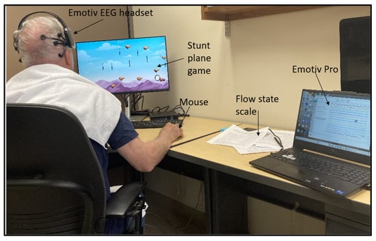 With the growing number of older adults using computer games [,], a passive neurofeedback BCI paradigm could help sustain the engagement of older adults when playing these rehabilitative, cognitive games at home. The recent advancement in technology has led to an increase in the volume of commercial BCI systems on the market []. However, the first step towards a passive BCI adaptive game control is an adequate data acquisition system and an accurate machine learning (ML) algorithm for the engagement assessment. Thus, this study aims to answer the following research questions: