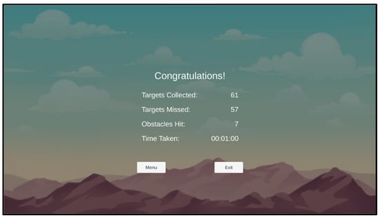 TC and TM were assigned the same weighted value because they contributed equally to the performance of the player. The item missed is the item that should have been collected, and the item collected is the item that could have been missed. Hence, they contributed equally to the performance in the game, and so a weight of five was assigned. The OH effect was limited and did not directly affect TC; however, it was somewhat important, as it measures the player’s dexterity (how well can they collect the target items without hitting the non-target items). Hence, a weight of two was assigned.