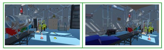 Finally, control of the system was performed bilaterally, allowing both remote monitoring and direct interaction with the virtualized environment. The inclusion of an avatar within the system contributed significantly to the immersion of the user, providing a visual representation of his presence in the simulated environment. This avatar not only enhanced the sense of presence in the simulation but also facilitated interaction with the various components of the system, guiding the user through the industrial processes represented in the simulation (see Figure 11). Because of this approach, the Digital Twin platform offers a more intuitive and immersive learning experience, enabling a deeper understanding of industrial processes and optimization of operating parameters in a safe and controlled environment.