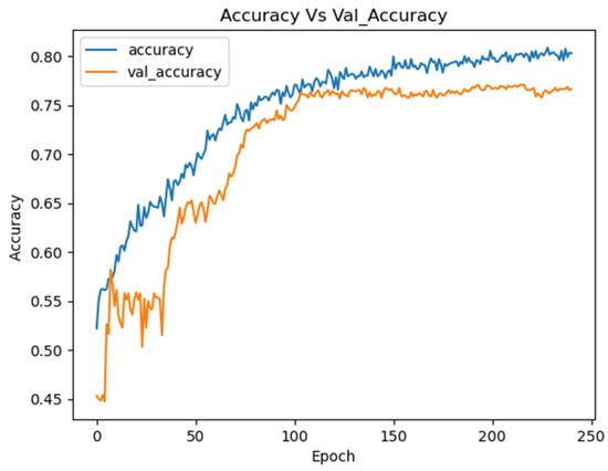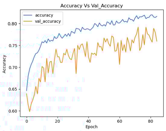 In this study, an optimized neural network was developed using Optuna, a hyperparameter optimization framework that automates the search for optimal model configurations using Bayesian optimization with a Tree-structured Parzen Estimator (TPE) strategy. The TPE algorithm models the hyperparameter–performance relationship by estimating probability distributions of good versus poor configurations, iteratively sampling promising regions over 200 trials in a single optimization run. The search space included the number of convolutional layers (1–3), dense layers (1–3), convolutional filters (32, 64, 128), kernel size (3, 5), pooling size (2, 3), dense units (32–512), dropout rate (0.2–0.5), and learning rate (10−5 to 10−1, logarithmic scale). Each trial trained the model for 100 epochs with early stopping (patience: 10), evaluating accuracy on a validation set split from the 80–20 training data. Optimization terminated after 200 trials or a 24 h timeout (86,400 s), whichever occurred first, balancing exploration and computational cost. Table 1 exemplifies 10 trials, illustrating the range and outcomes (e.g., Trial 1: 69.65% accuracy with 128 filters). This single-run optimization, without repeated 200-trial cycles, aimed to maximize accuracy efficiently, leveraging TPE’s adaptive sampling to refine the CNN architecture.