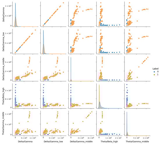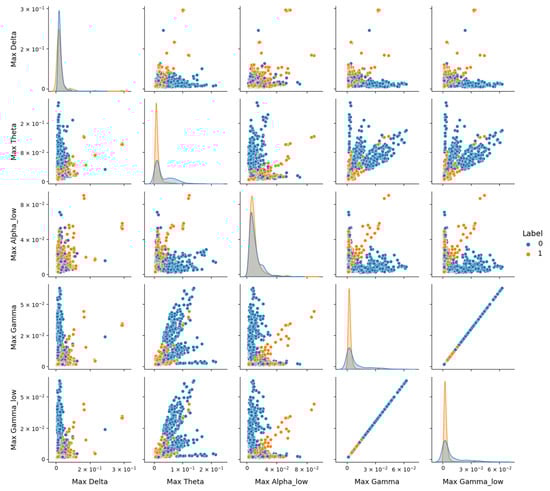 The features used for the EEG signal analysis were categorized into three main types: time domain features, frequency domain features, and nonlinear features. Time domain features included the mean and the standard deviation. Additionally, kurtosis was used to distinguish the sharpness of the waveform, while asymmetry gave insights into the symmetry of the EEG signal. In the frequency domain, the power spectrum, obtained through Fast Fourier Transform (FFT) in NumPy, was analyzed. Power spectral ratios were also calculated to compare the power of various frequency bands within the signal. Lastly, nonlinear features, such as differential entropy, were employed to quantify the complexity of the brain’s electrical activity, offering a measure of signal uncertainty.
