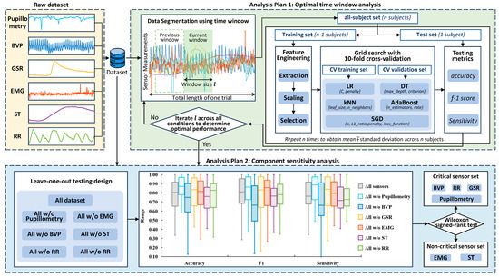 - Lin, Y.; Xiao, Y.; Wang, L.; Guo, Y.; Zhu, W.; Dalip, B.; Kamarthi, S.; Schreiber, K.L.; Edwards, R.R.; Urman, R.D. Experimental Exploration of Objective Human Pain Assessment Using Multimodal Sensing Signals. Front. Neurosci. 2022, 16, 831627. [Google Scholar] [CrossRef] [PubMed]