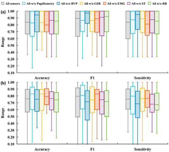 - The second question is to evaluate how excluding individual physiological sensors affects the model performance.