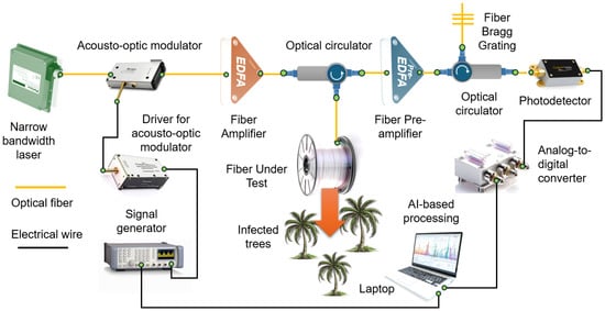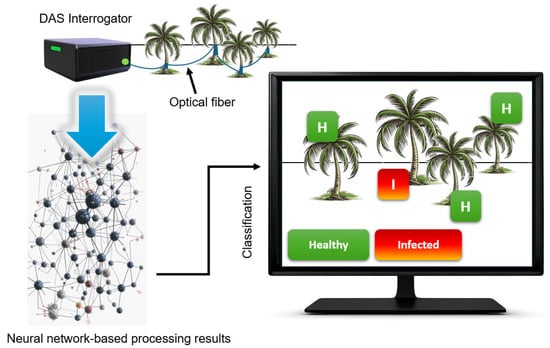 - Ashry, I.; Mao, Y.; Al-Fehaid, Y.; Al-Shawaf, A.; Al-Bagshi, M.; Al-Brahim, S.; Ng, T.K.; Ooi, B.S. Early detection of red palm weevil using distributed optical sensor. Sci. Rep. 2020, 10, 3155. [Google Scholar] [CrossRef] [PubMed]