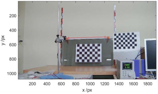 Figure 4) to measure the distance between the camera and the reference surface. Through this process, a scale of 1.19 mm per pixel, a tilt of −1.82 degrees, a field of view of 59.02 degrees, and a focal distance of 5.63 mm were obtained.