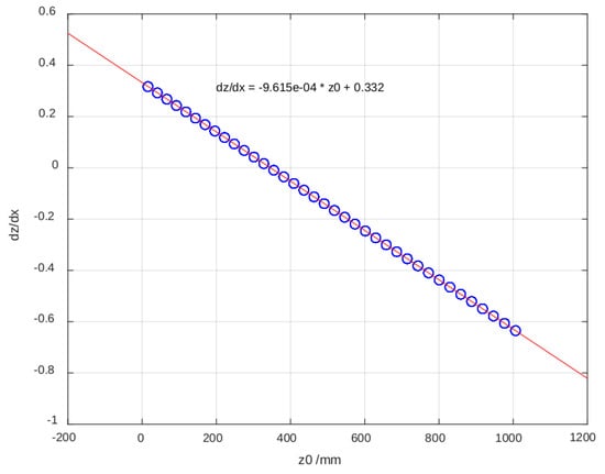 Once the simulation is calibrated, it can be used for various applications. For instance, to analyze the vertical displacement of the stripes ( axis) caused by a surface movement in the direction normal to the wall ( axis), it is possible to simulate the stripes generated by two parallel planes and to calculate the ratio , which varies with the height .