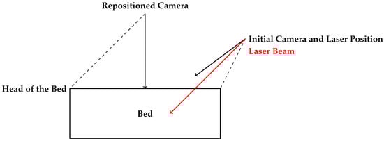 The experimental setup initially involved positioning the camera and laser assembly at a height of approximately 2 m, which was situated about 1 m from the foot of the bed. This configuration, as illustrated in