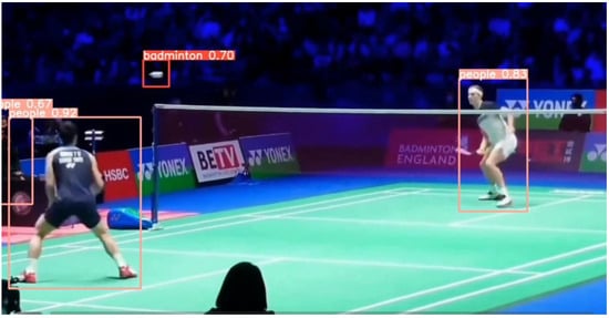 In summary, the badminton target detection model established in this study is robust and has a generalization ability, and it can accurately detect the position of the badminton and the players in different environments and competitive intensities. At the same time, it allows the user’s shooting environment to flexibly change, meeting the needs of daily teaching and training.